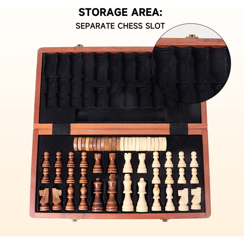 Storage area: The folding game board easy storage and for transport. The chess set features a chess slot storage area for convenient chessman and pieces storage, all the pieces encased stored separately without interfering with each other, avoiding pieces rubbing against.