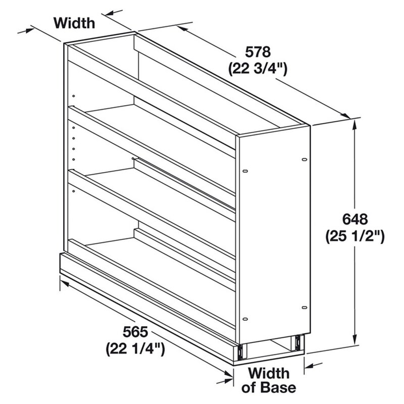 Base cabinet pull-out model number HA.545.47.274 fits 12 inch framed base cabinets (also can be used with frameless cabinets)