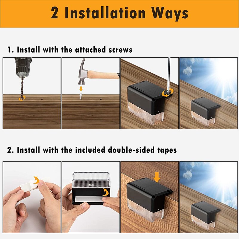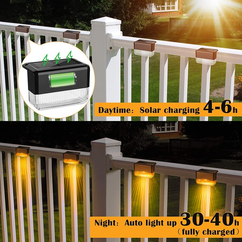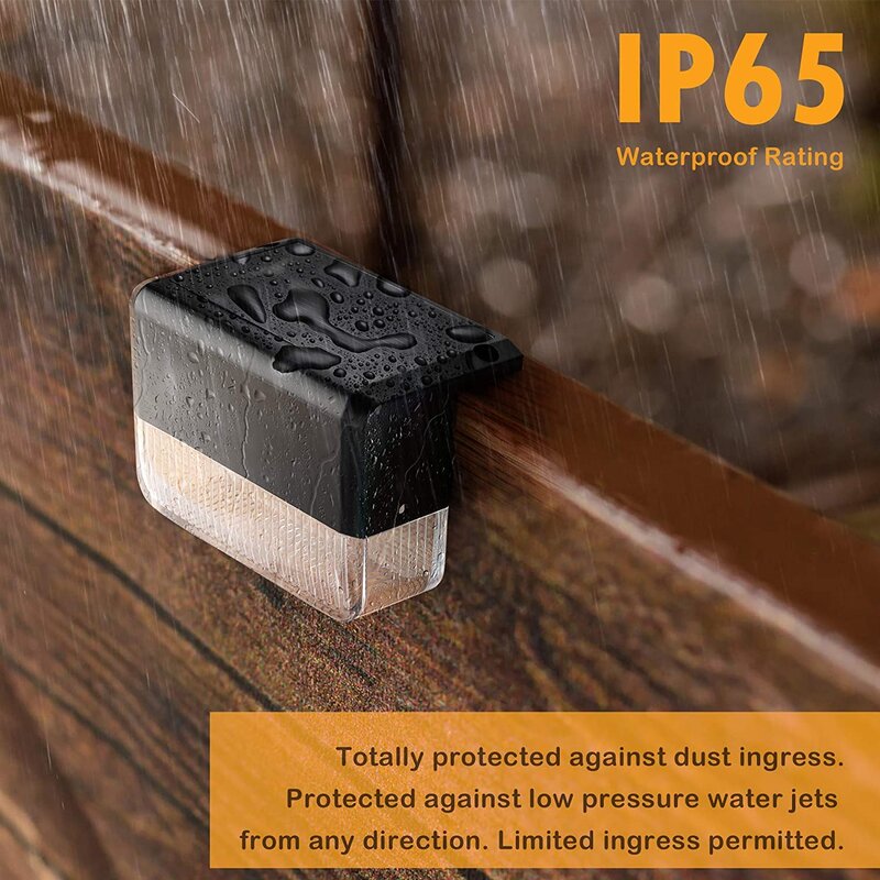 With IP65 waterproof, this solar deck light is made of high-quality ABS and PC plastic, and its housing has passed environmental testing for corrosion resistance. It will not change color or rust after a long time of use, which ensures the durability of the light. With IP65 weather resistance to withstand wind, snow, and moisture, it is durable all year round.
