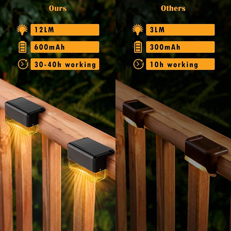 The outdoor solar deck light is designed with a striped transparent cover that reflects a beautiful pattern of light through the transparent cover to make your garden stand out. Perfect decorative lighting for decks, fences, steps, stairs, gardens, backyards, yards, paths, driveways, front doors, patios, etc.