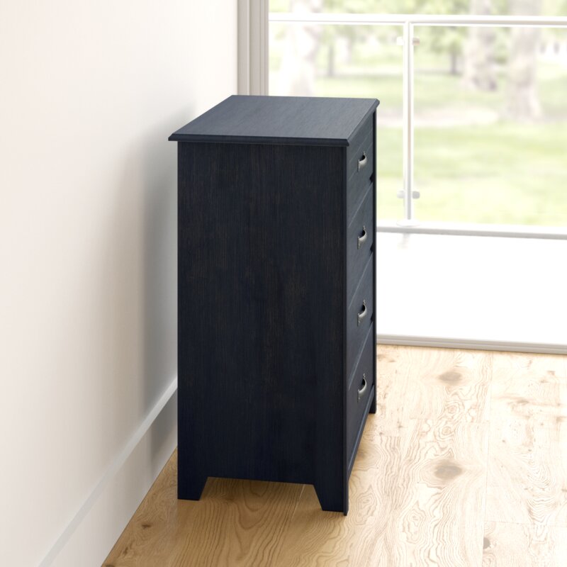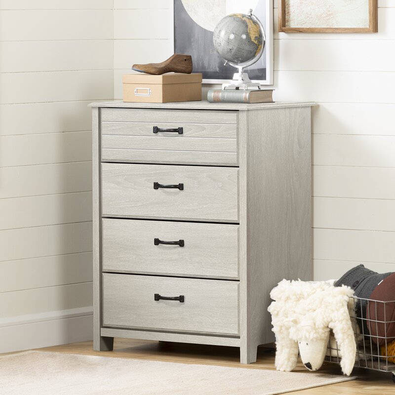 Classic style: the 4-drawer dresser features a traditional design accented by the timeless finish and metal handles. The clean lines and the decorative top drawer will blend with any bedroom décor or furniture.