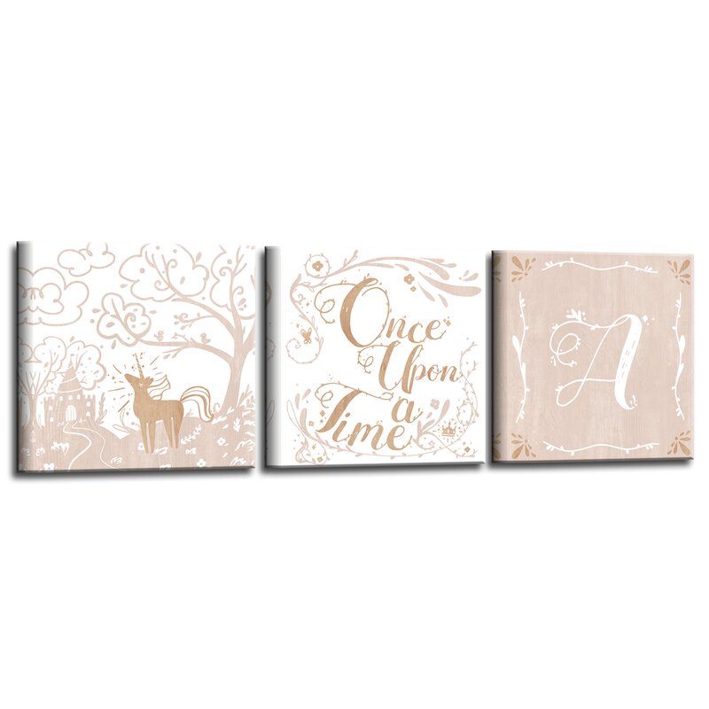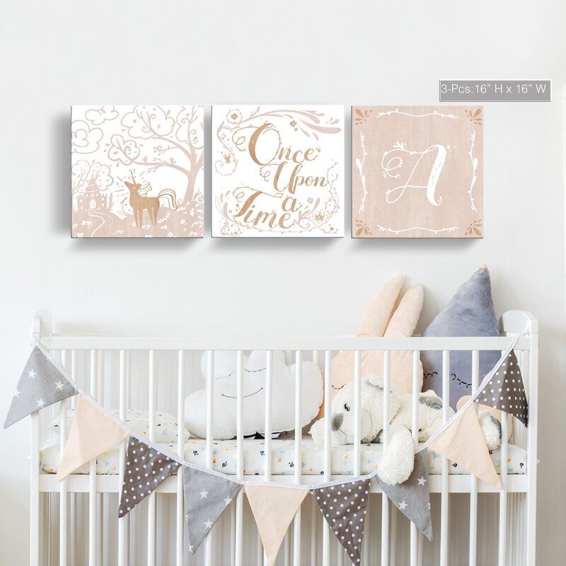 Personalize your child’s space with the inspirational and playful energy of this three-piece monogram canvas art set titled, ‘once upon a time.’ Epitomizing whimsical charm this imaginative wall art set proves to be versatile, fitting your child’s decor theme as they grow from infant to toddler. About gallery wrapped canvas masterfully produced in Florida on water resistant canvas enhanced with a matte UV-resistant finish and skillfully wrapped on a wood frame finished with a rear saw-tooth hanger for simple installation. A Florida-based small business, dedicated to enhancing the home decor with innovative designs, and locally made products at a competitive value. Proudly made in America, they make decorating simplified.