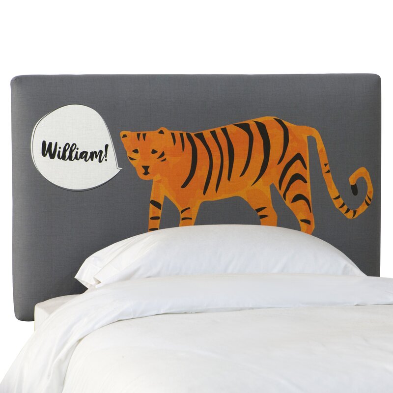 Monograms aren’t just for adults: They can be fun for little ones, too! This upholstered headboard boasts an on-trend orange and black tiger, digitally printed on a gray background. You can customize the headboard with your kids’ name or nickname, which is centered in a white speech bubble near the tiger’s mouth. This headboard is made in the USA and features a solid pine wood frame that’s wrapped in foam and upholstered with 100% linen fabric.