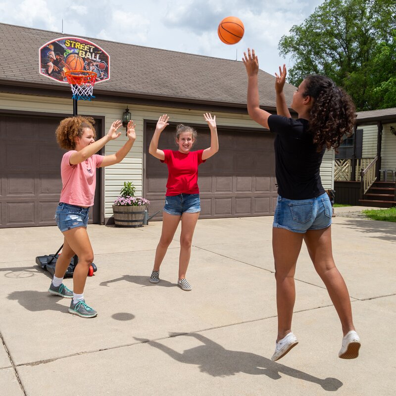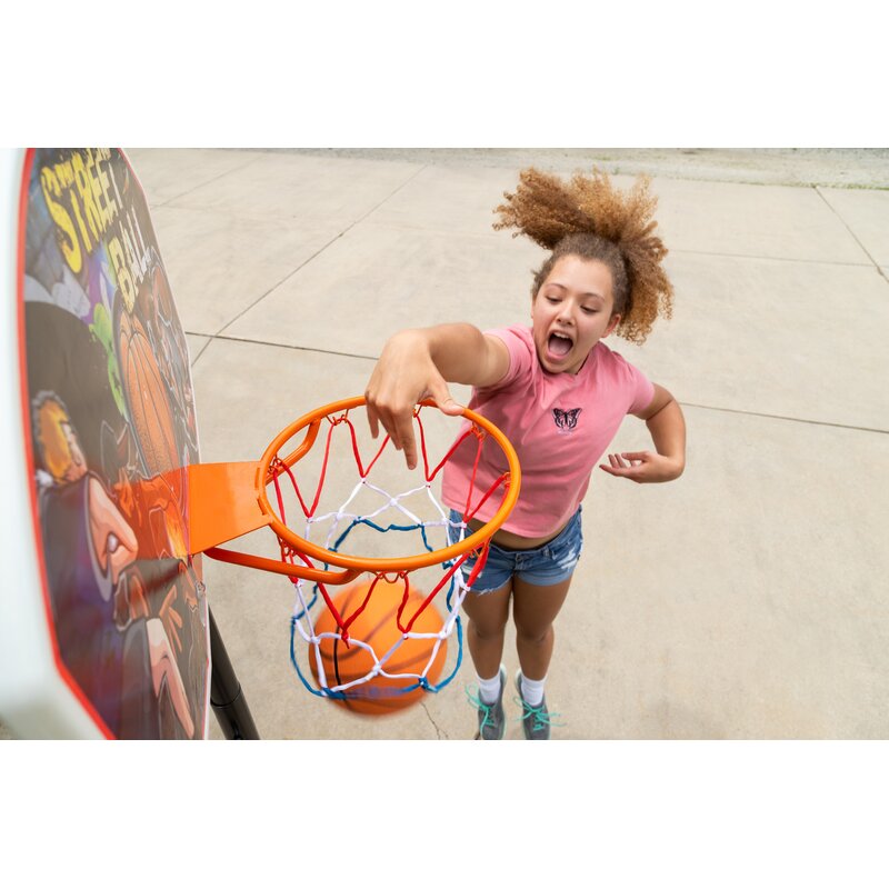 Kids and teens can perfect their slam dunk indoors or out with this basketball hoop. Adjustable from in 6-in increments, it’s the perfect size for kids to play like the pros! A backboard crafted from high-density, impact-resistant material is UV-coated for superior protection against the elements. Fill with sand or water and play today!