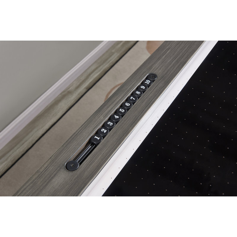 2 manual, inset scoring systems so the table can accommodate a table tennis conversion top.