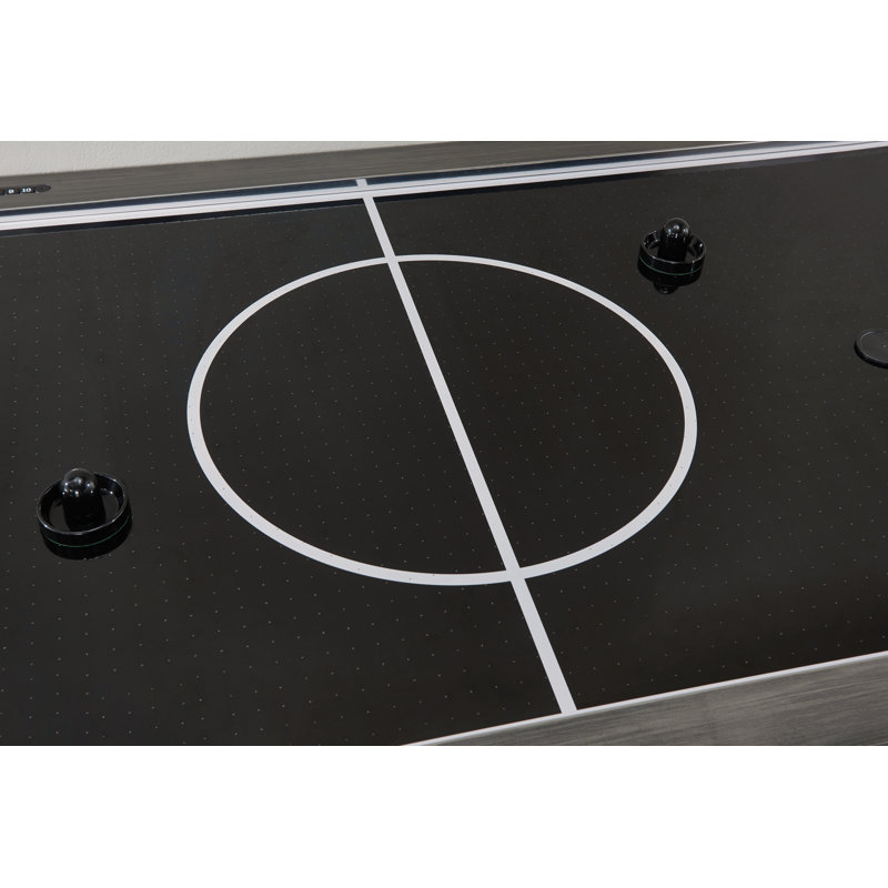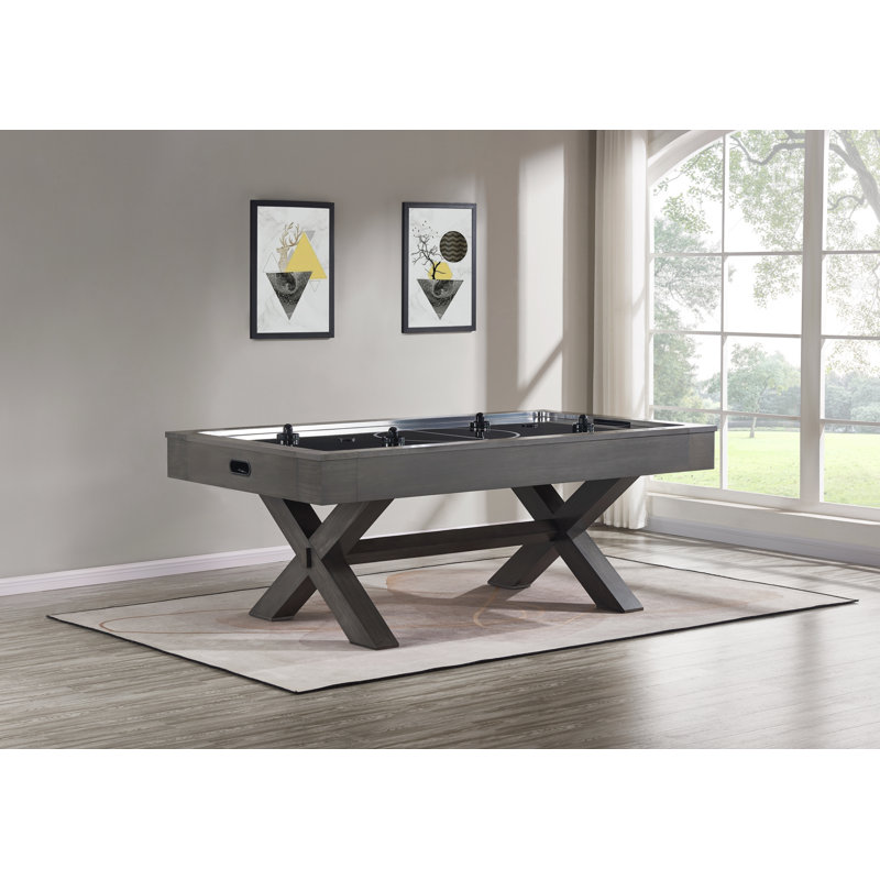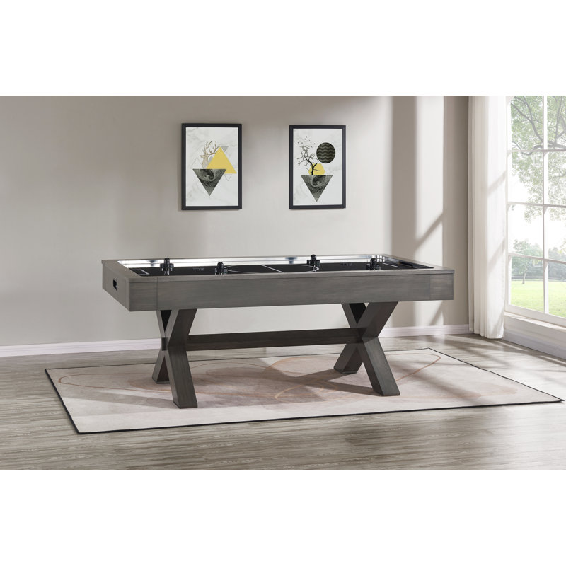 Score major points with the Blake Air Hockey. This sleek table boasts a seriously impressive silhouette with x-shaped legs with a modern style that elevates the look of any room. It has a single, powerful fan for smooth, even airflow that keeps up with even your most competitive gameplay. The regulation-size field plays fierce and looks sharp in a rec room. Two manual, inset scoring systems allow the table to accommodate a table tennis conversion top so you can play two games on one table. It comes with 4 pucks and 4 goalies so you can dive right into the excitement.
