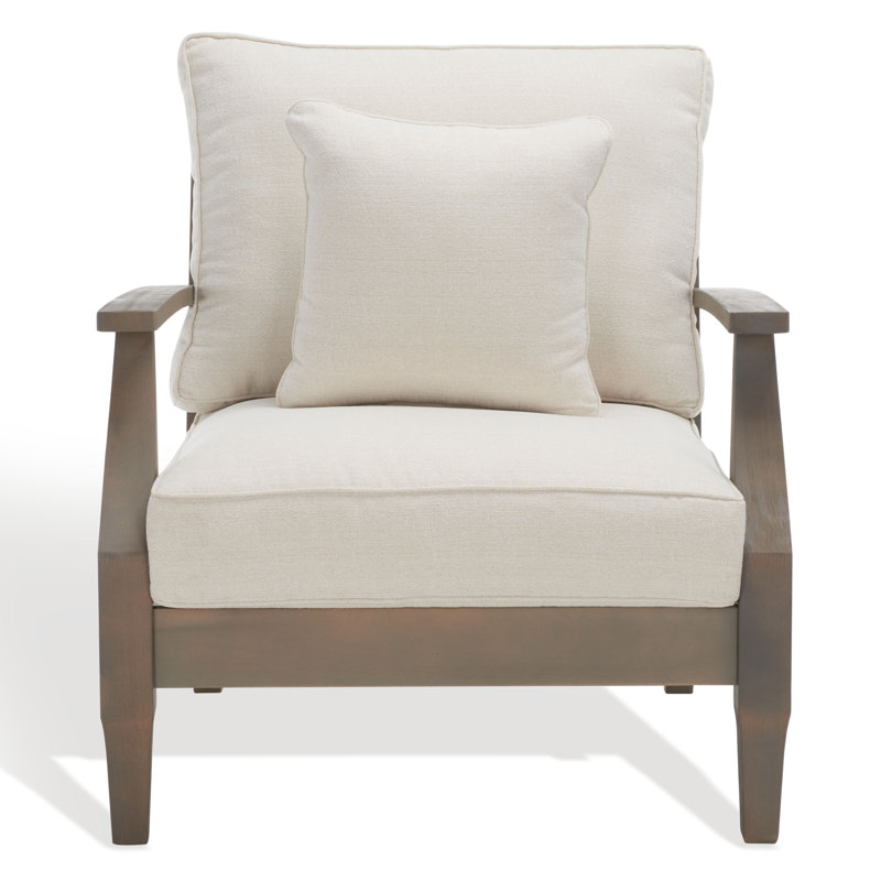 Flaunting coastal villa class and high-style design, the Ducan wood patio armchair elevates the ambiance of any outdoor patio, porch, or backyard deck area. Crafted of natural eucalyptus with a slatted back and angled silhouette, this smart patio chair hints at a timeless colonial style. Soft upholstery ensures that Ducan looks and feels fabulous season after season.