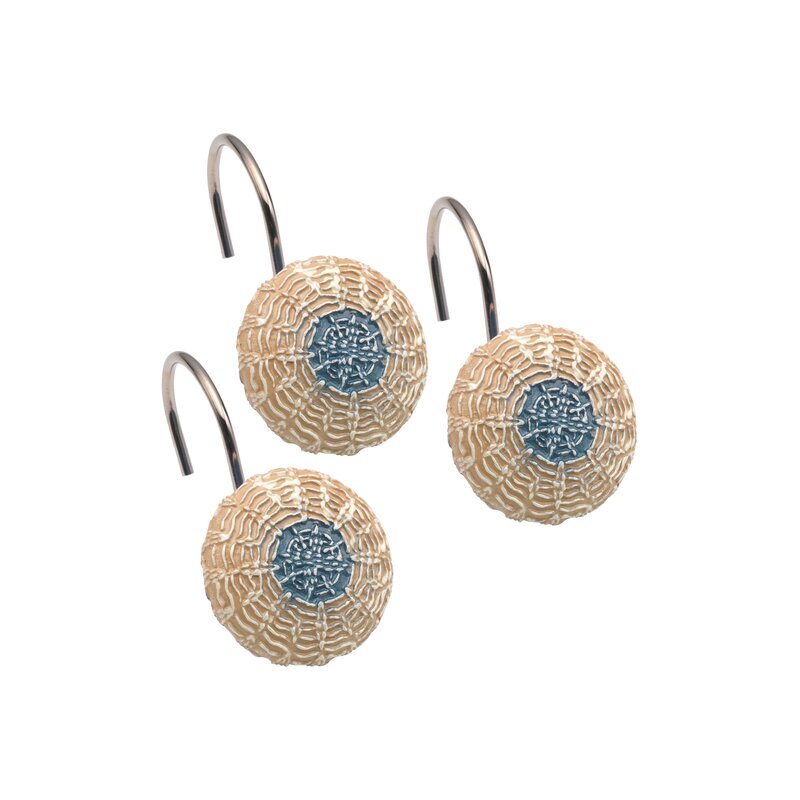 I just remodeled a master bath, and the walls are now a beautiful shade of blue. These tan and blue curtain hooks tied in my color theme really well and look great.