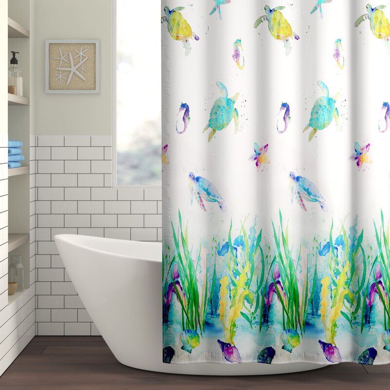 An essential in every powder room, shower curtains protect your decorations from the spray of water while offering another way to add a dash of style. This design showcases an oceanic design atop a white background, complete with colorful fish for a whimsical look. A total of 12 stitch-reinforced hook holes make it easy to drape this piece with the hooks and a liner of your choice.