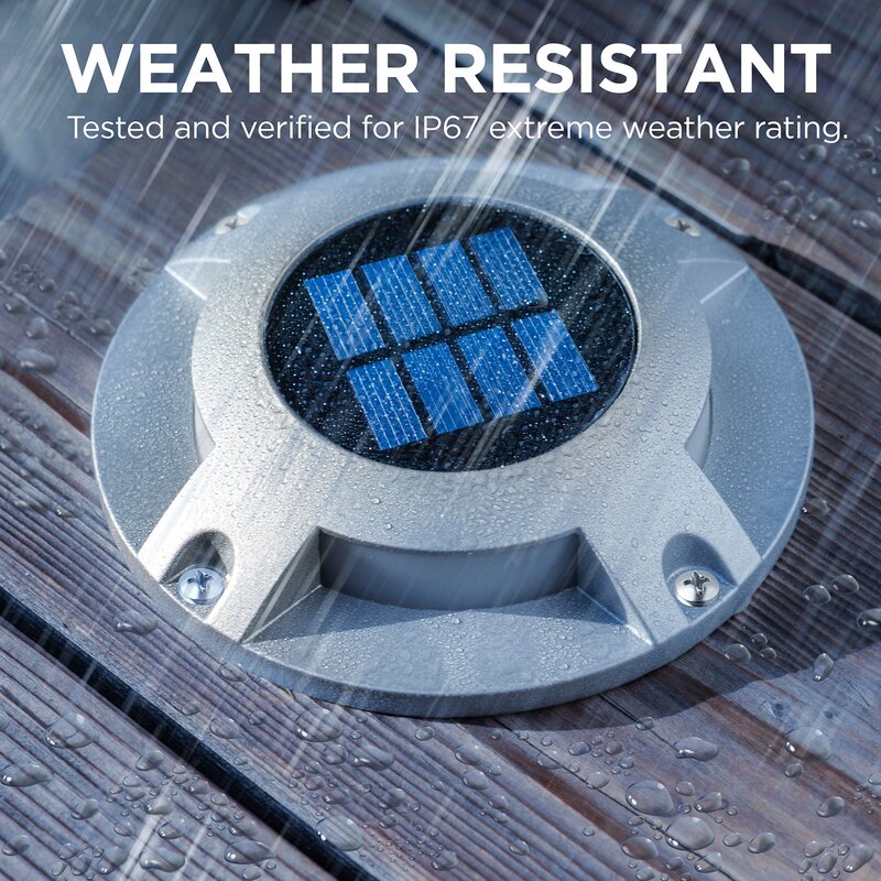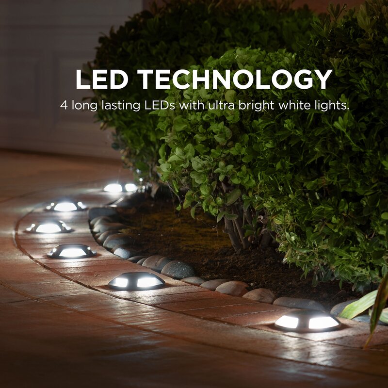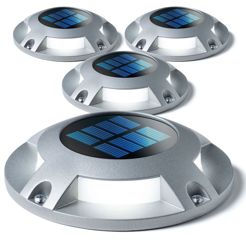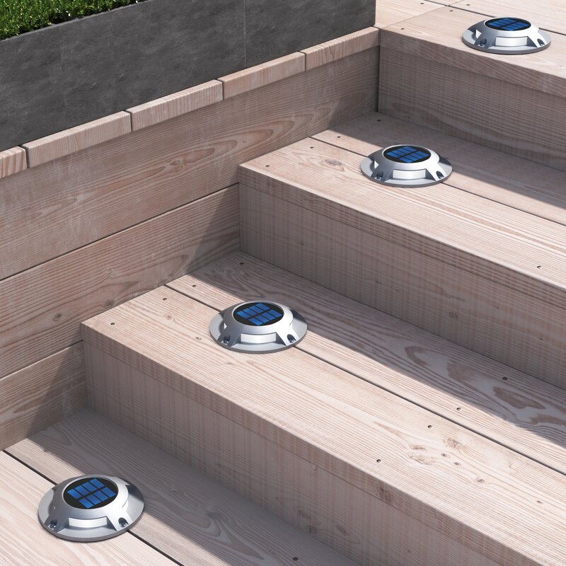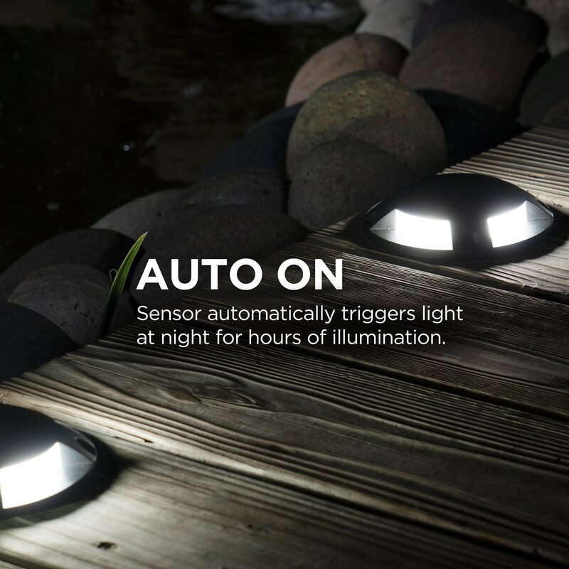 Upgrade your home with extremely durable solar-powered deck lights. This deck light requires no wiring and can be set up virtually anywhere using the included mounting screws and anchors. The package includes four light fixtures, mounting accessories, and an instruction manual. Equipped with four bright LED lights and a rugged modern design, the deck light is a reliable, long-lasting solution for additional home security and safety throughout the night.