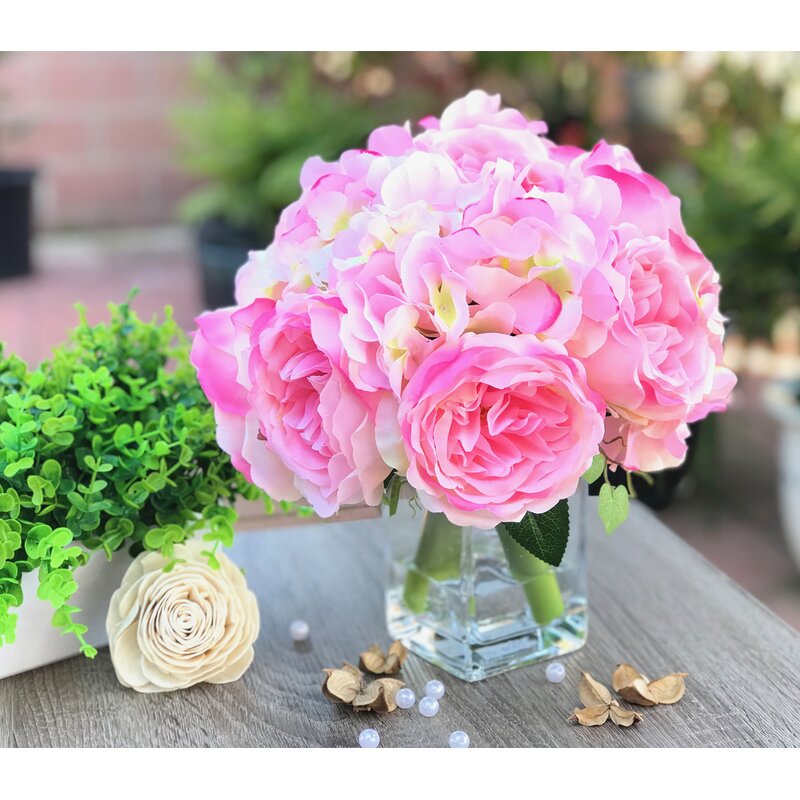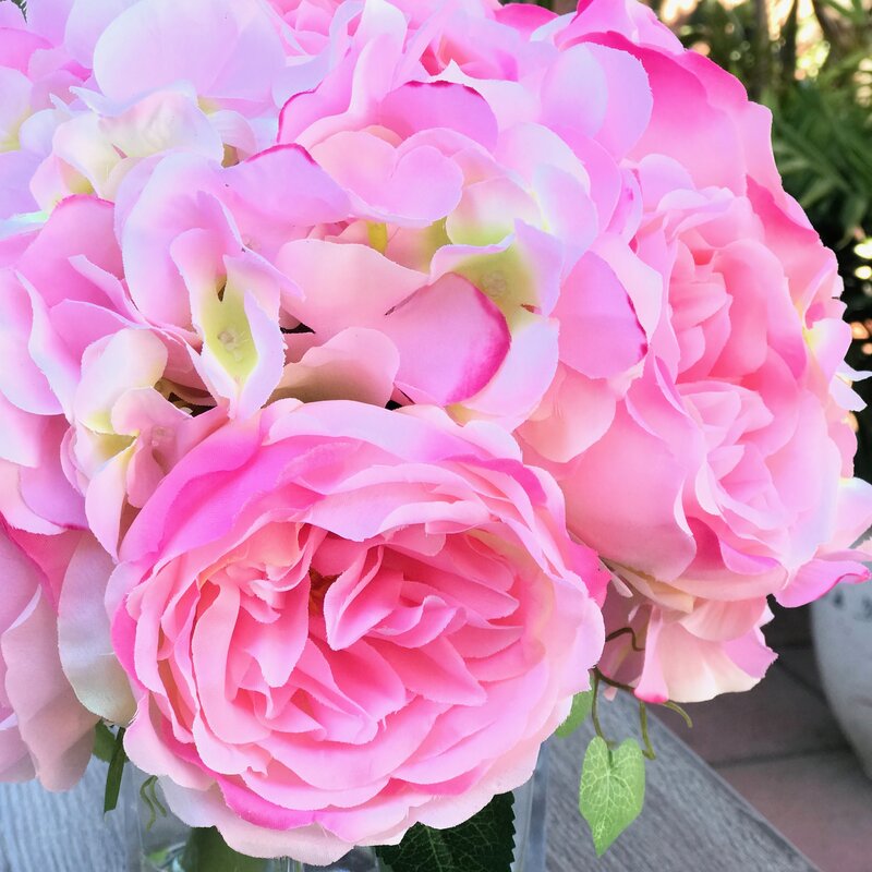 The vigorously growing peony and hydrangea shrub symbolize growth, heartfelt emotions, and prosperity. Adding these into your decorations and arrangements will give your party or home space a refreshing and exotic appeal and sophistication. Amazingly realistic foliage gives an enchanting finishing look to the bouquet; soft stems are comfortable to hold while delicately handcrafted blooms give an everlasting refreshing look and feel to your floral arrangements. Unlike their fresh counterparts, these undying silk blossoms will always stay colorful, vibrant, and blooming, oozing everlasting festive colors of happiness all around! Bring a touch of color, garden-chic appeal to your ensemble with this eye-catching faux peony bouquet.