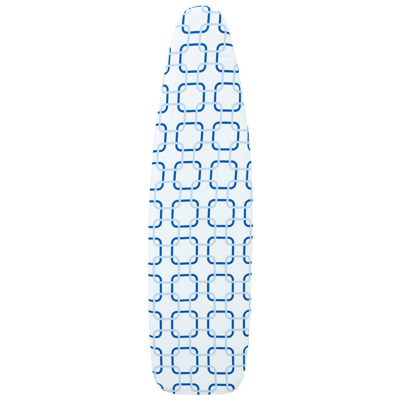 This colorful ironing board is wonderful for an ironing enthusiast looking to brighten up their day-to-day laundry duties. A lovely blue geometric pattern is printed across the cotton cover, matching the blue leg caps, which both aid in stability and reduce scuffs. The cover is tightened to the board with a simple drawstring, easily adjustable and preferable over elastic, which can lose its strength over time. This ironing board is not only stylish but also shows off a unique arched T-leg support system. These arched feet keep it steady on a variety of surfaces, such as uneven floorboards, carpeting, and rugs. Releasing the leg lock allows the user to adjust the height to their liking and prevents the legs from falling open when storing or grabbing the board. The 100% cotton cover and 5mm fiber padding reduce the risk of creases and improve ironing results. These layers are also tested to exceed scorch and stain resistance standards. While you iron, the steel mesh top, and cotton cover help circulate heat and steam, leading to effortlessly terrific results. This ironing board is a wonderful step towards achieving better ironing results with a bit of stylish flair. With its sturdy frame, steel mesh top and accommodating support system, this would be a great option for someone who irons regularly and is looking to upgrade.