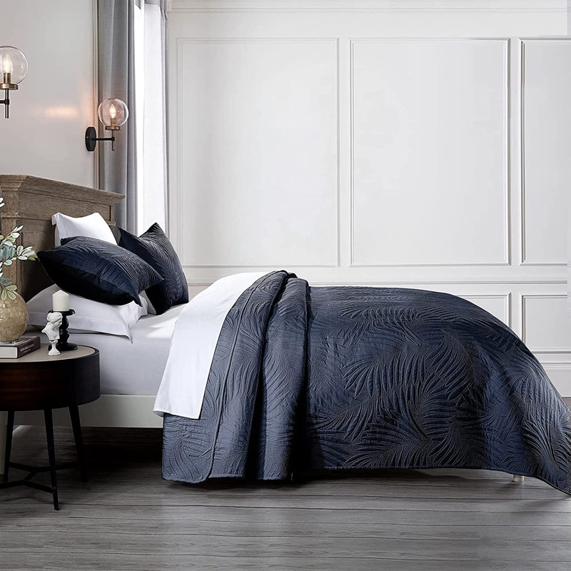 This quilt set freshens up your bedroom and includes 1 quilt and 2 matching pillowcases. It’s made from microfiber polyester, which is skin-friendly and safe to throw in the washing machine for maintenance. The leaf pattern design makes it look more elegant and stylish.