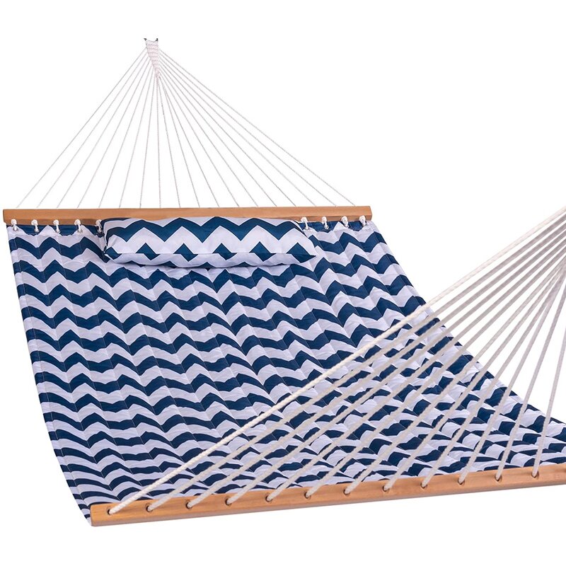 Lazy Daze Hammocks 55″ Double Size Quilted Fabric Hammock with Hardwood Spreader Bar and Poly Head Pillow Stylish for Two Person, Blue Chevron Stripe