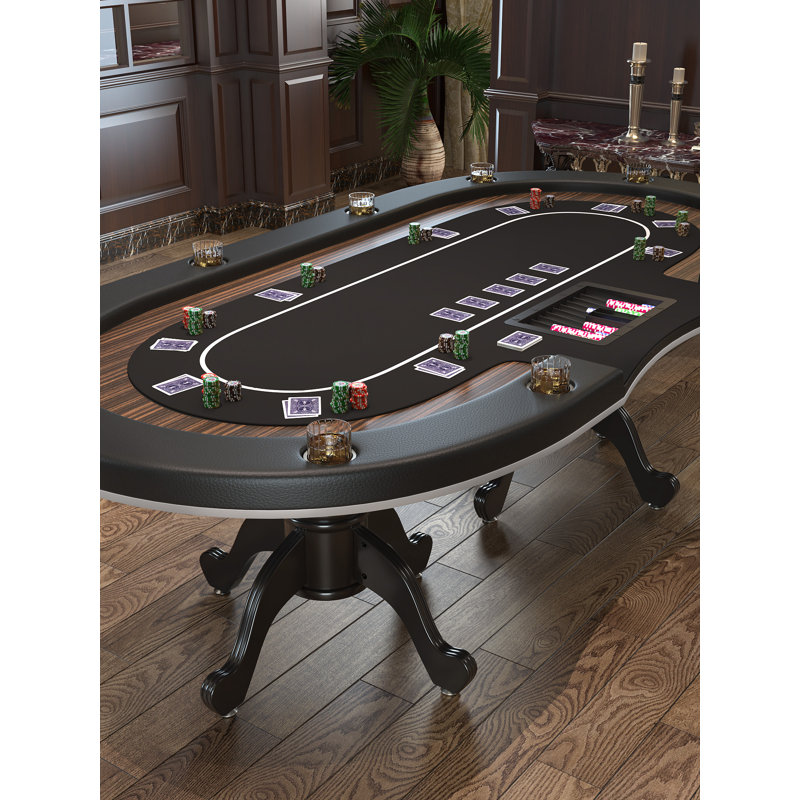 10 Jumbo size cupholders are embedded in leather handrails in front of 10 players’ spots;