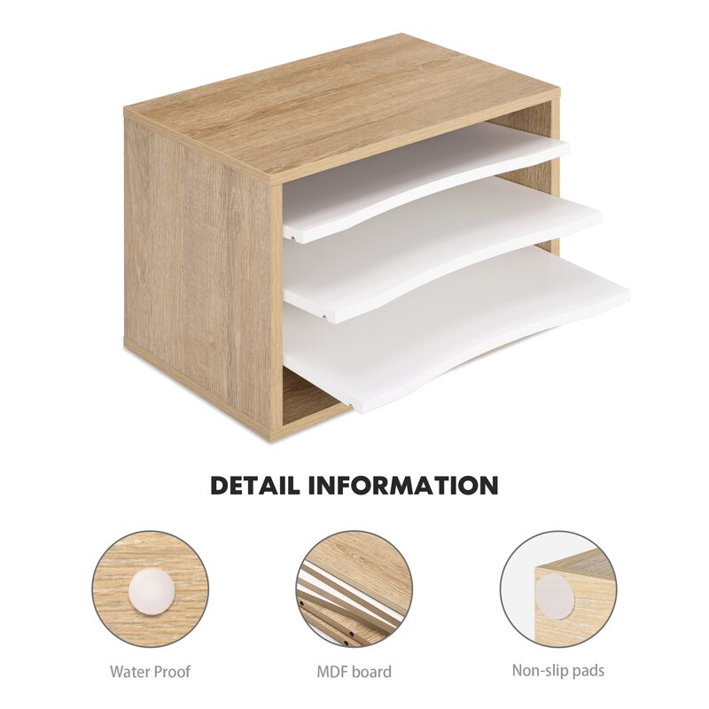 This desktop wood file organizer can be used as a paper sorter, keep the file folders, printer, paper, and other supplies organized. You can place this stand on the desk or under the desk stackable to save sapce in office, study or work areas.