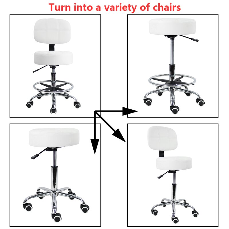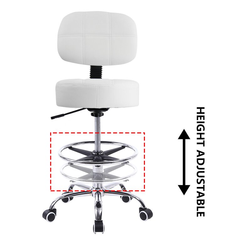 The footrest can also be adjusted, the unique design creates the drafting stool an industrial look and sleek contemporary style; comfortable cushion made of PU; rolling stool without arms ideal for work home kitchen shop spa medical salon bars beauty.