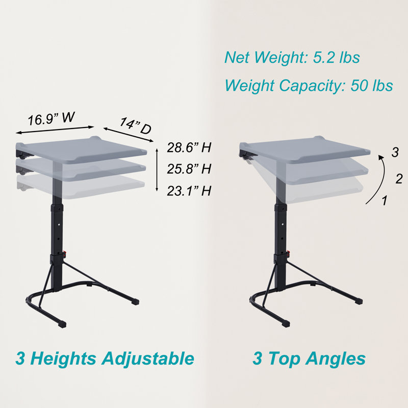 ã€Adjustable Heights & Angles】Adjustable TV tray table with 3 heights from 23.1†to 28.6†and 3 tabletop angles.