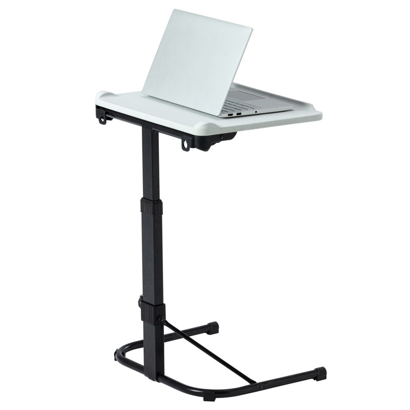 This is a really functional snd solidtray table.You can adjust the height as well as the angle – which makes it useful as a tv tray and laptop stand.Folds nicely into a small size when not in use.Came completely assembled.Great addition.Also on sale.Thank you!