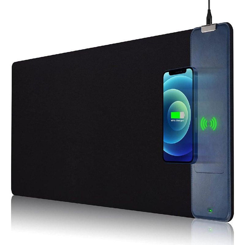 〠Charging Mouse Pad】Made of Cloth Desk Pad and Leather Charging Pad, which protects your desk from scratches, stains, spills, heat and scuffs. Built-in Qi fast charging compatible with smartphones that support charging such as Samsung, iPhone and all other Qi-enabled devices.It also gives your office a modern and professional atmosphere when you put it on your desktop. (NOTE: Fast charging need QC3.0/2.0 adapter, the adapter is not included)