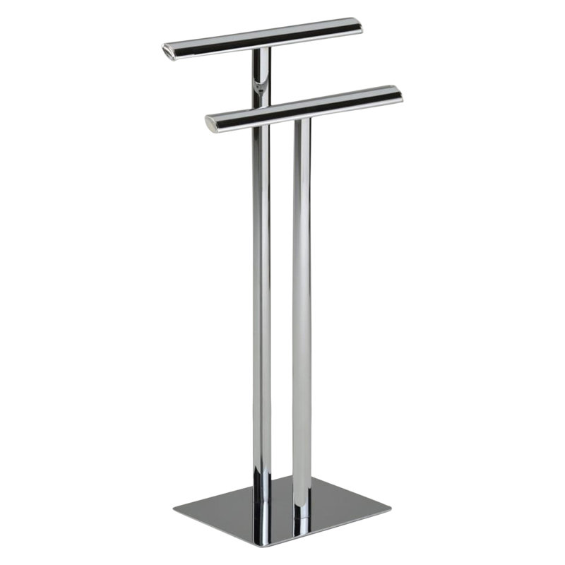This Free Standing Towel Rack practical space-saver slim and can easily fit in any master bathroom, guest bathroom, or powder room in your home or apartment. It features two bars to conveniently hold full-size bath towels and washcloths.