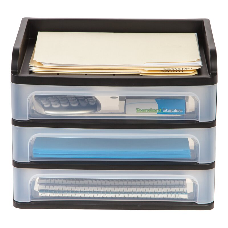 Loved the clear 3 pullout drawers to store our office supplies, along with the handy top compartment for easy access to paper or envelopes.