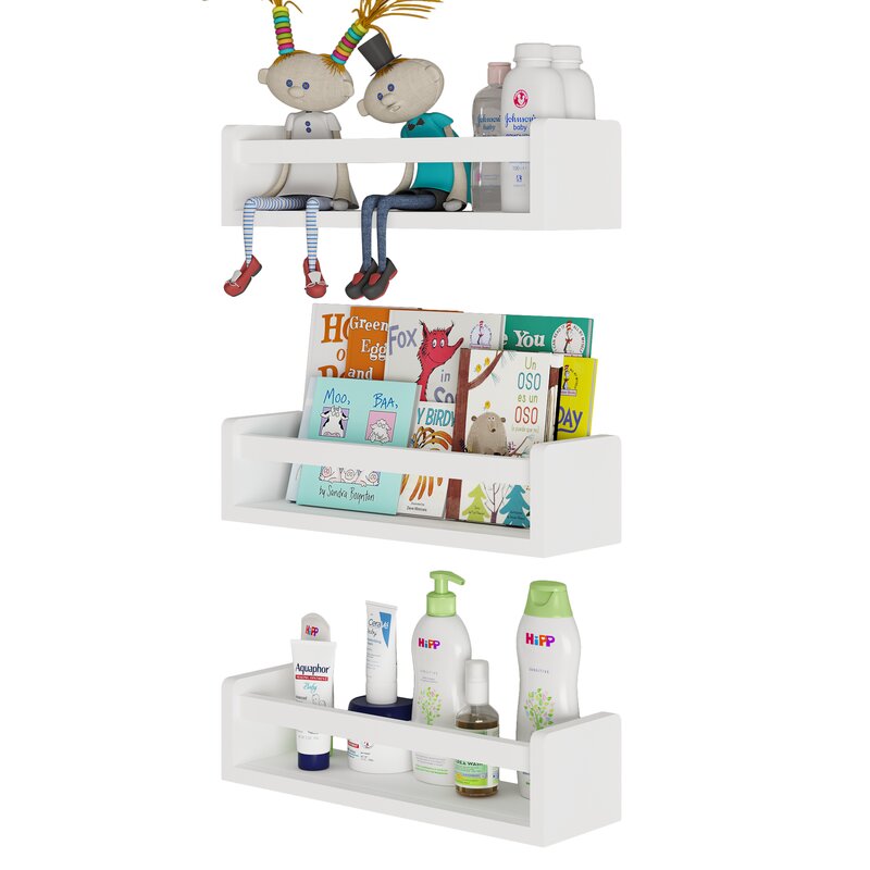 Functional: This floating shelf set will serve you in both kid’s rooms and nurseries. Keep your baby diapers, baby night light, bath essentials, body oil, baby powder, and more at your fingertips.