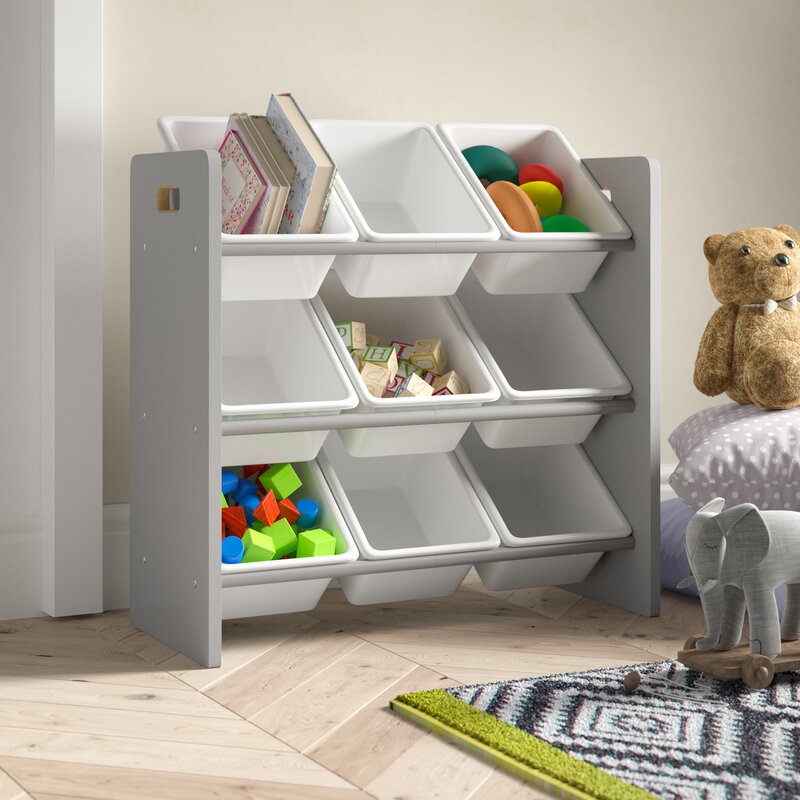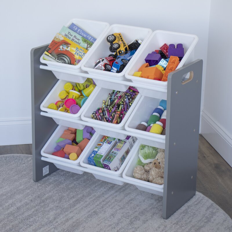 Nine removable toy storage bins