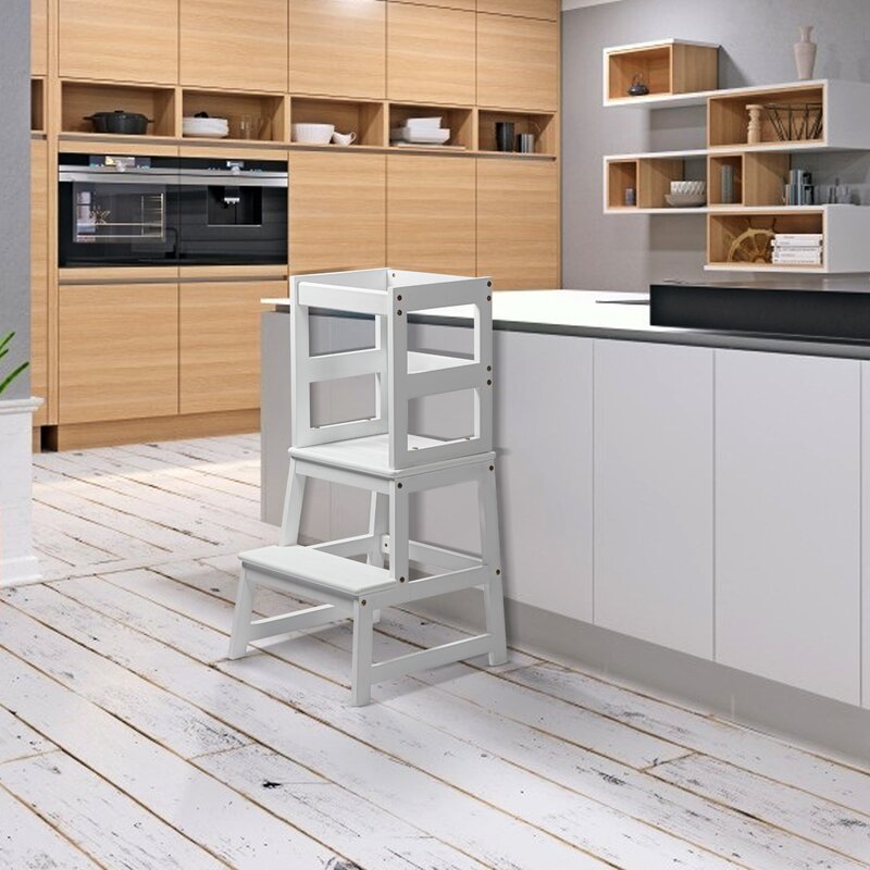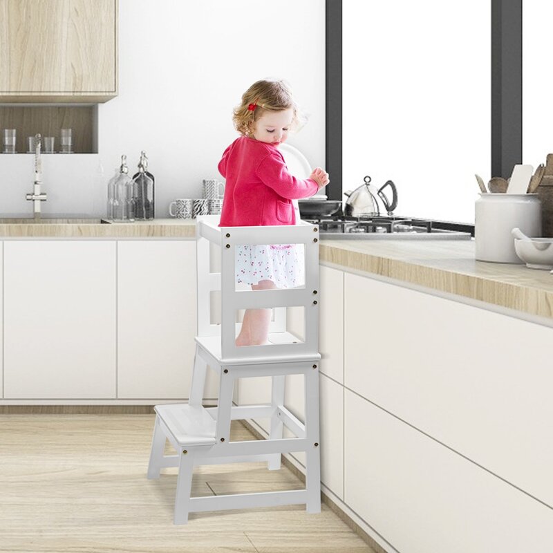 Kids step stools help your kids enjoy cooking fun in the kitchen and exercise their hands-on ability. The wooden step stool can be placed in the bathroom to teach the baby to wash his face and brush his teeth. Baby can do many things by himself to build independence and confidence.