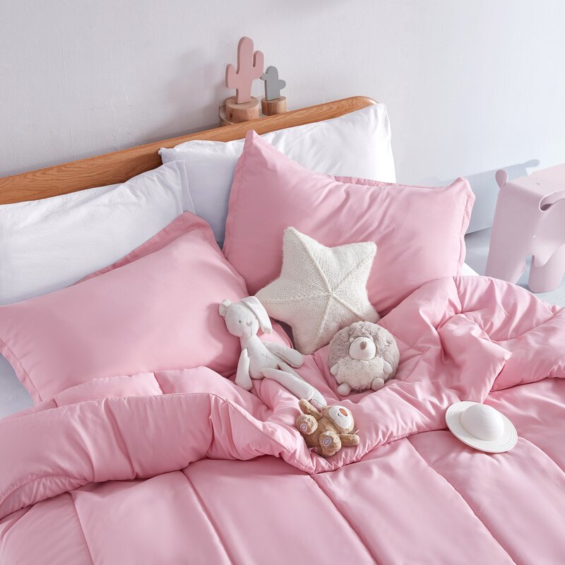 Bring cozy comfort and colorful whimsy to your child’s bedroom with this Bedding Set. The matching comforter and sham(s) feature a solid pattern available in a cheerful, versatile shade of pink making it perfect on its own or mix and matching to create a perfect space for your little one. The comforter is crafted from soft brushed microfiber and overfilled with a premium blend of microfiber and Invista® cooling fiber for comfort and brilliant breathability. Additionally, this all-season bedding set is hypoallergenic, lightweight, and machine washable for easy care.
