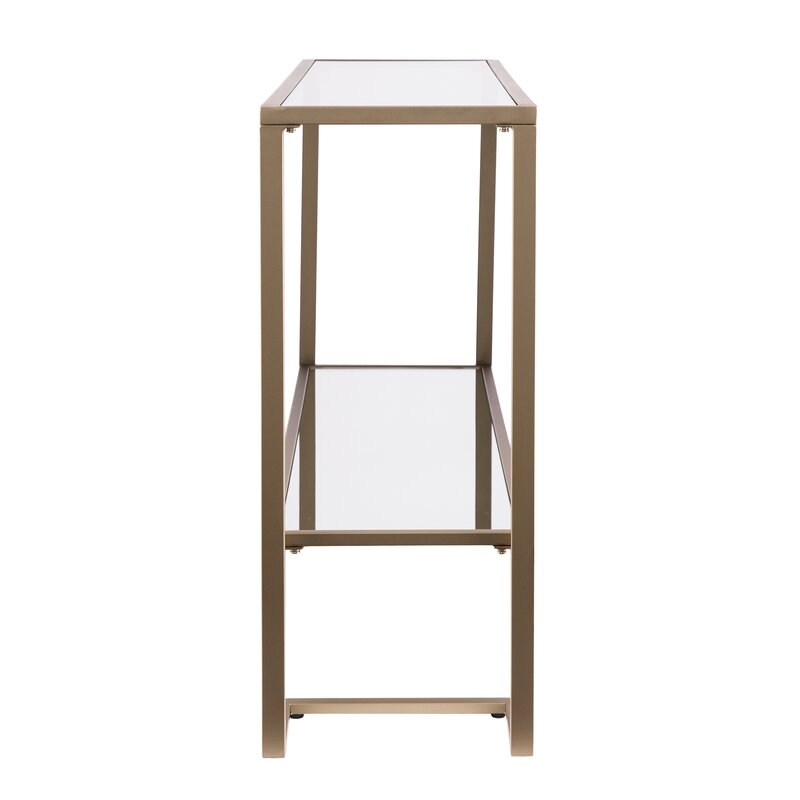 From accenting your entryway to providing a place to leave those hard-to-find keys, console tables are a great addition to any decor. Take this one for example: crafted from iron, the base showcases a geometric design with clean, open lines for a look that works well in any contemporary setting. The tempered glass shelf and top provide the perfect place to store and showcase loose odds and ends, while also offering a sleek motif to your space.