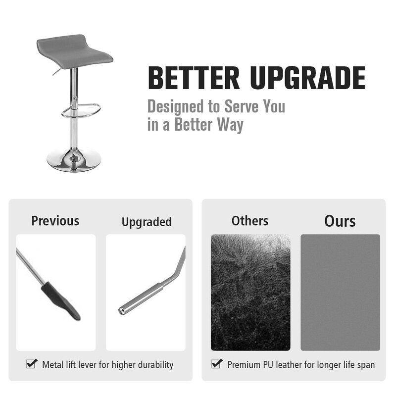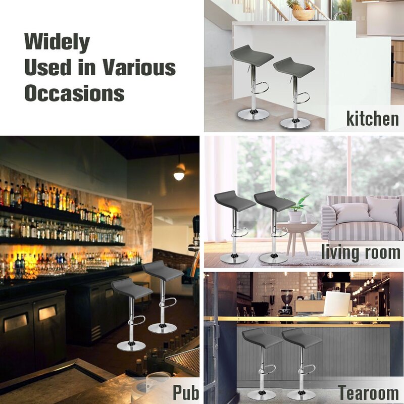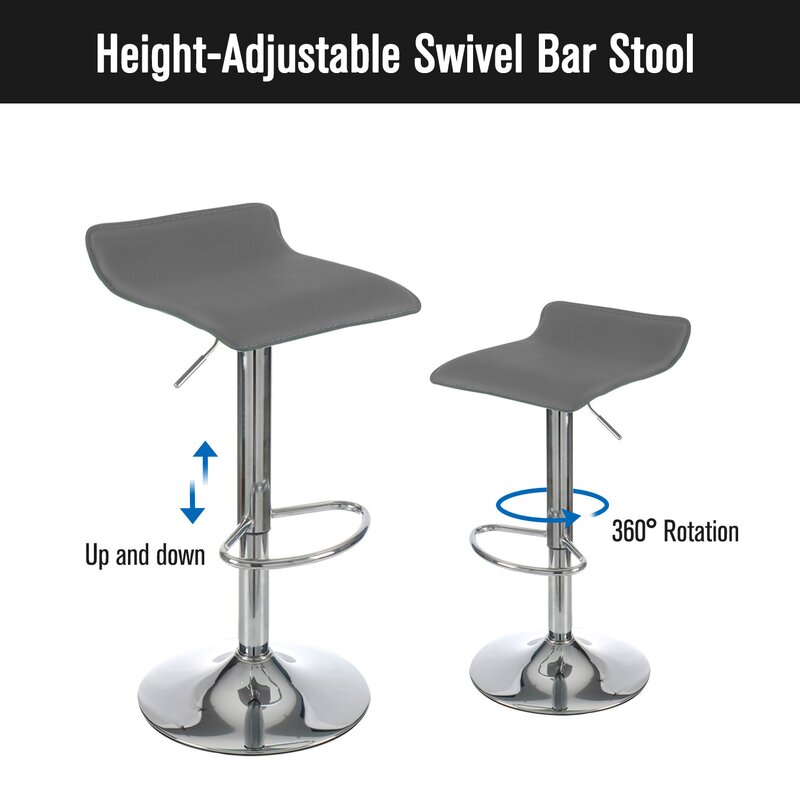 Our modern bar stools will add a contemporary touch to your home, office, bar, or restaurant. Hot, sleek, incredibly fashionable, and fun, these adjustable swivel bar stools are a must-have for the modern home, which has obtained SGS certification. The gas lift pole and lever allow adjustments for height, while the swivel feature makes it easy for you to turn as needed. Adjustable height with a chrome finish base and footrest allows for easy comfort while resting.