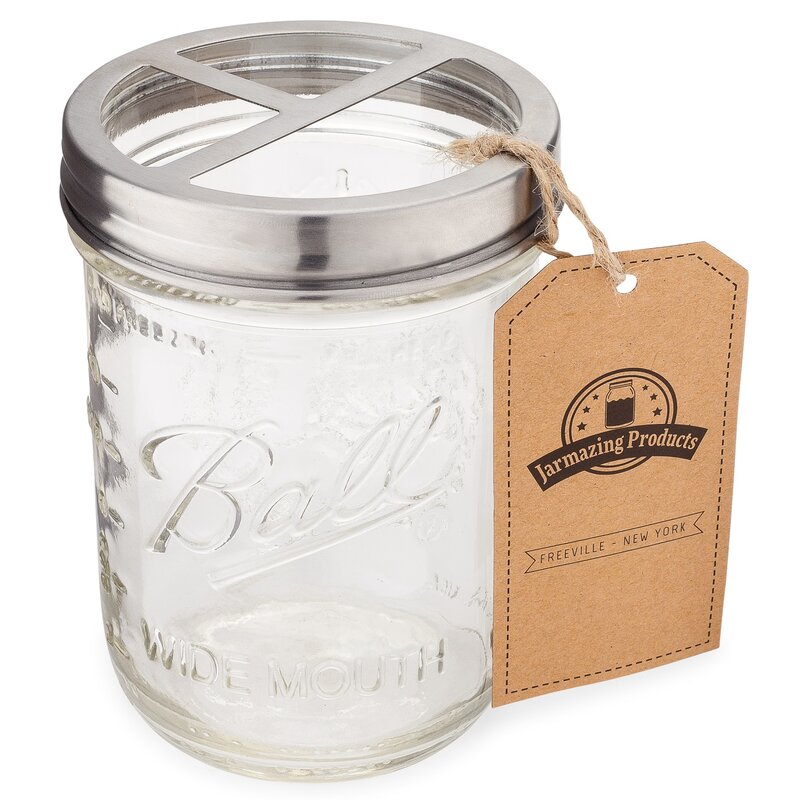 This jar toothbrush holder adds a timeless, elegant touch to your bathroom, and comes with a genuine wide-mouth pint ball mason jar. We’ve paired a real glass mason jar with our unique stainless lid to make the perfect bathroom organizer! Made of durable rust and corrosion-resistant 304 stainless steel that is plated in black, this mason jar accessory is made to last. The large compartments have plenty of room for toothpaste and toothbrushes and can accommodate razors, flossers, tongue scrapers, and more. Organize your life! This jar is also great for items in your office, art room, and more! Easy to clean and dishwasher safe! Great for a timeless look that matches industrial, farmhouse, shabby elegance, modern, and rustic décors. This jar measures 3.5 inches wide and just under 5 inches tall. This set includes a stainless steel mason jar toothbrush lid as well as a glass ball mason jar.