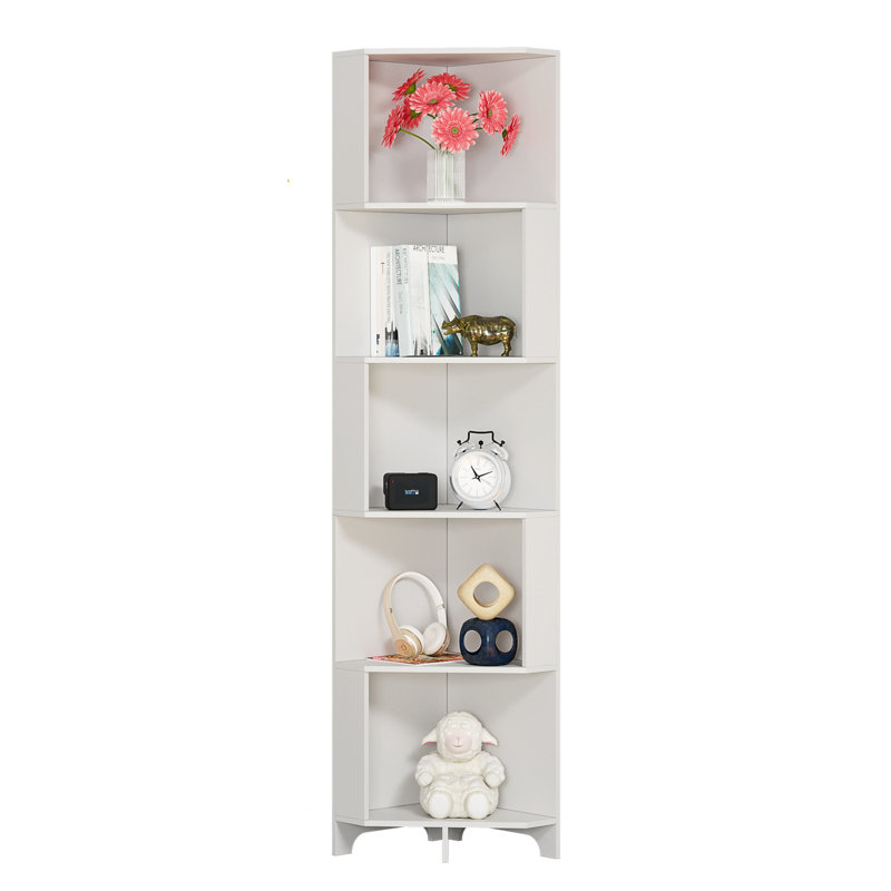 Corner Frame Design: Corner frame design to perfectly fit the wall, which maximizes the value of the corner for you and increases space utilization, and doesn’t occupy too much floor space. It has 5 tiers storage shelf and is good enough to hold books, some potted plants, and various furnishings.