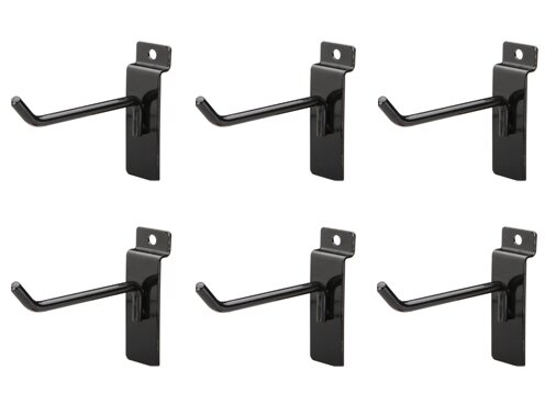 Heavy-duty metal hook where support strength is required for storing tools. Jifram’s stabilizer clips ensure the hook stays positioned on Slatwall and the double hook clips accommodate storage for handled tools. Comes with 6 hooks. This item will only work with Jifram Easy Living Slat Wall.