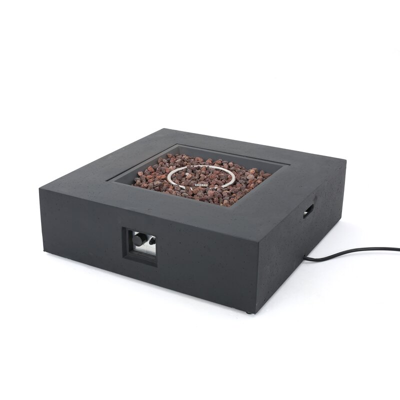 Keep warm on the back deck or patio with this Fen 12″ H x 39.9″ W propane outdoor fire pit table. Complete with a tank holder, this compact design brings you the cozy ambiance of flickering flames without lugging bulky fire pits, changing logs, or shoveling soot. This fire pit table’s boxy silhouette adds contemporary style to your outdoor arrangement, while the push-button ignition outputs 50,000 BTUs of heat – lava rock fill is included and the flames are adjustable. This product requires propane and comes with a 60” fuel hose.