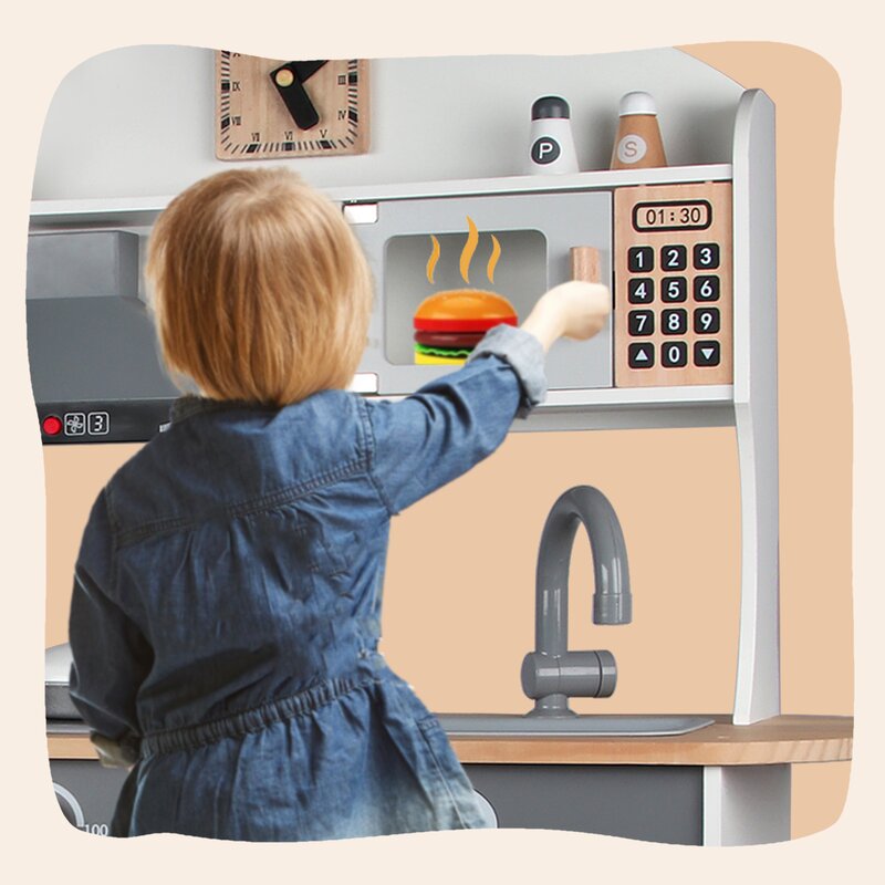 All-in-One Kids Play Kitchen for Toddlers provides hours of fun and educational entertainment. Let your little ones’ imagination, explore, learn, and pretend with a variety of lifelike cooking & cleaning essentials including a microwave, refrigerator, freezer, ice maker, stovetop, sink, shelving, Etc. Age Group: 3 to 10 years.