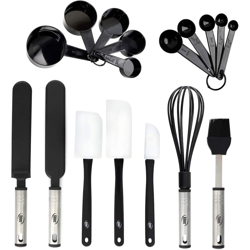 Shop smart, save and gain: Don’t waste your time in spending a fortune with buying each utensil individually, buy yourself a full 17 piece high-quality and light-weight set for cheap and gain a rich selection of professional utensils, which will enhance your kitchen experience. It is specially designed to help you with all your food preparations, such as whisking, stirring, measuring, mixing, scraping, and baking!
