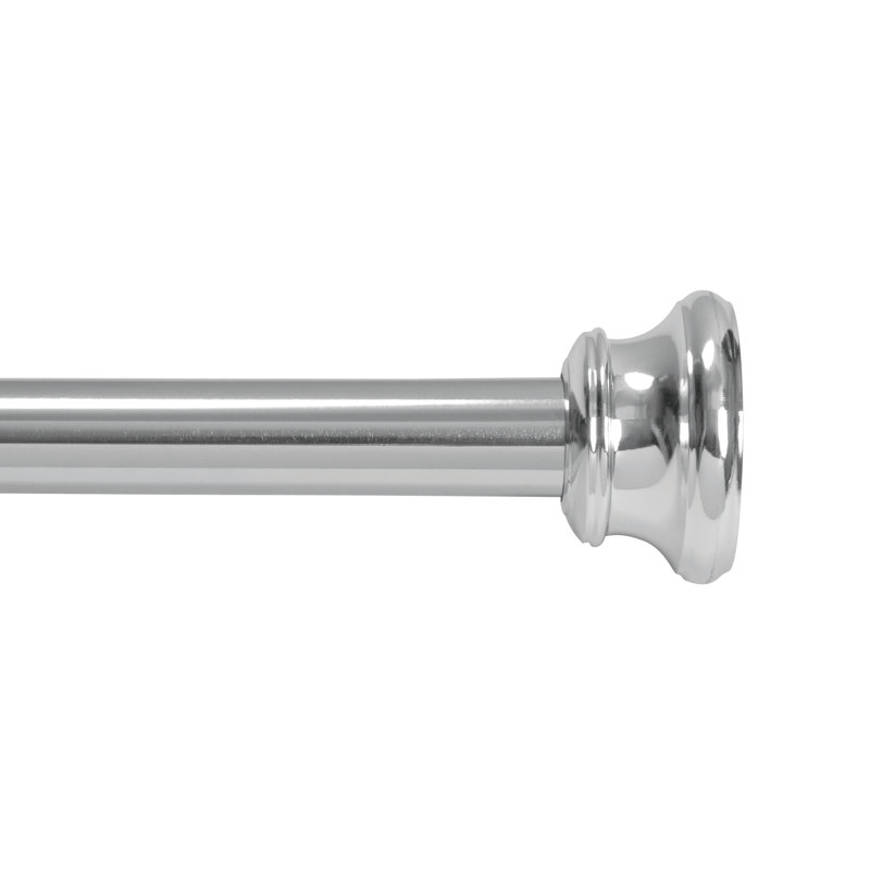 Add a decorative touch to your shower and bathroom with a Kenney Twist & Fit No Tools Decorative Tension Shower Curtain Rod. Great for standard and oversized sized bathtubs, this shower rod adjusts from 42 inches to 72 inches wide. The modern, decorative finials will complement your home decor and bathroom aesthetics.The shower rod is made of heavy-duty steel, designed to be both durable and rust-resistant over time. The non-slip, non-scratch decorative finial wall mounts mean no damage to your wall or tile.Twist and Fit makes installation easy without the need for tools. To install, extend against both walls at an angle, twist to lock, and level rod into place.