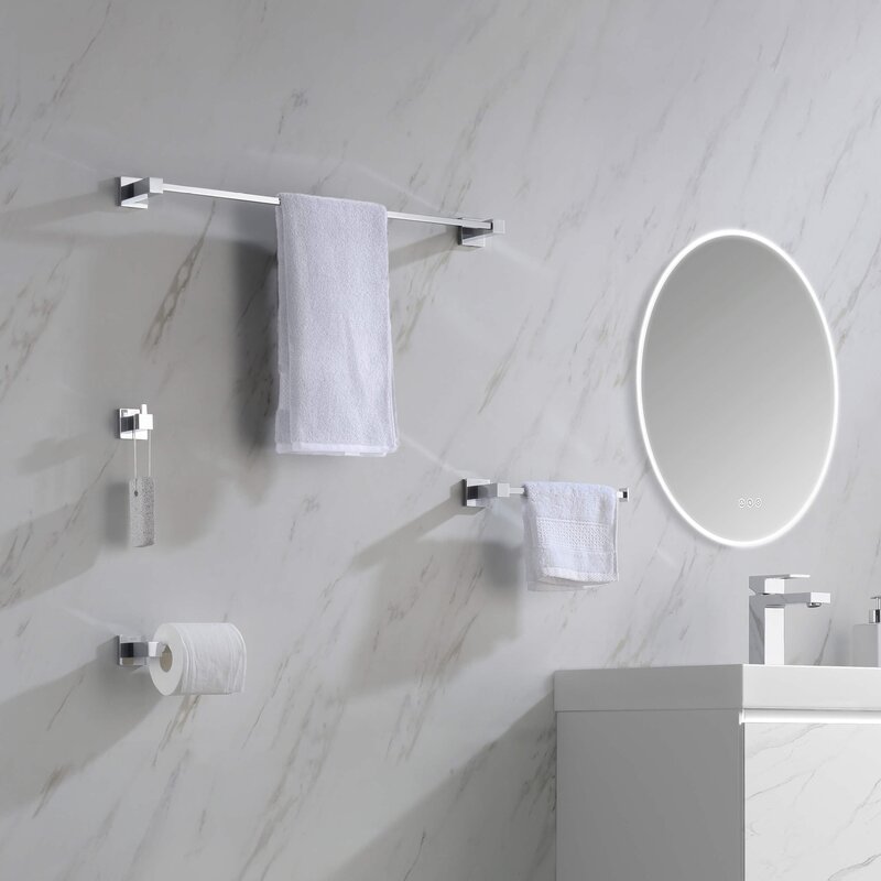 Save space with the sleek, solid brass Cube Hardware Set. The simple lines of this collection make it a great addition to any bath.