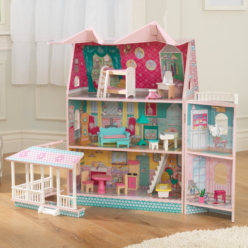 KidKraft Abbey Manor is a new way to play. This clever Victorian dollhouse uses a double-hinged design to open up for imaginative fun or fold away for convenience. The gorgeously detailed roof and wing open up to reveal three levels and five charmingly illustrated rooms. The detailed wraparound porch can be removed to create new floorplans. The third-level balcony offers a perfect imaginative view for dolls to enjoy. With 16 detailed accessories, kids can create the perfect getaway for dolls up to five inches.