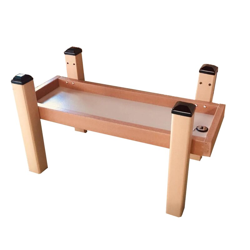 Components are made of specially formulated recycled HDPE plastic-based materials that will not rot, crack, peel or splinter. HDPE (High-Density Polyethylene) is impervious to insects and bacteria; requires no maintenance; is non-toxic; and is unaffected by severe weather or direct sunlight. The easy to clean surfaces never require painting or sealing and are mold and mildew resistant. Paint, ink, and other substances will not permeate the plastic, which prevents permanent staining. Just clean with any standard cleaner or power wash for a bright crisp look for many years to come! Rust-proof Stainless Steel fasteners are used to ensure long life and to maintain a beautiful appearance. The natural colors used on Kids’ Station Outdoor products will add to rather than subtract from your natural playground environment’s appearance.