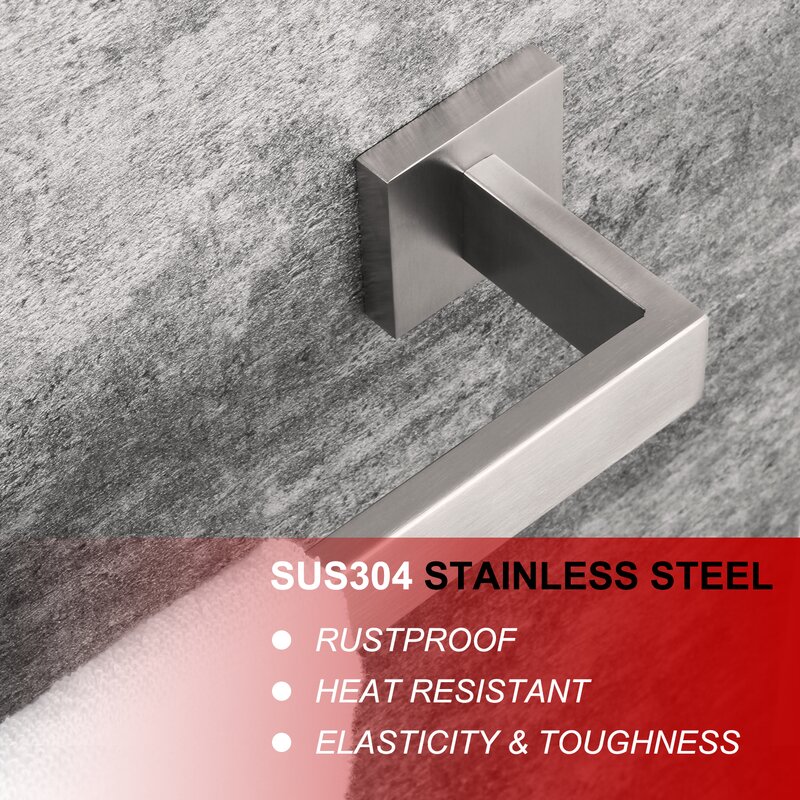 Material: SUS 304 Stainless Steel construction, With stamped steel mounting bracket. The towel bar is designed to be corrosion-resistant.