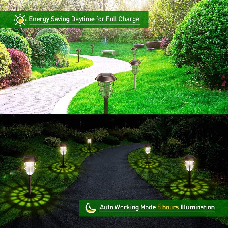 Worry-Free Installation & Maintenance Free – The solar-powered outdoor lights are easy to assemble, just insert the stakes into the ground as a solar ground light. The solar backyard lights are 100% solar-powered, they automatically turn on at dusk and turn off at dawn, making them more cost-effective. Our solar lawn lights are designed just for you to be easy to use while saving you money on electricity.