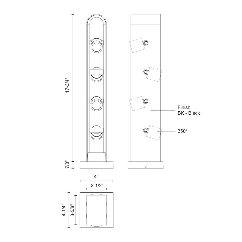 Inspired by the form and rotational illumination of lighthouses, this collection is as customizable as it is visually pleasing. With directional lighting that is completely adjustable, it is great for any space. Standard base for Hardscape mounting. Garden spike comes standard. Optional concrete pour anchor sold separately.
