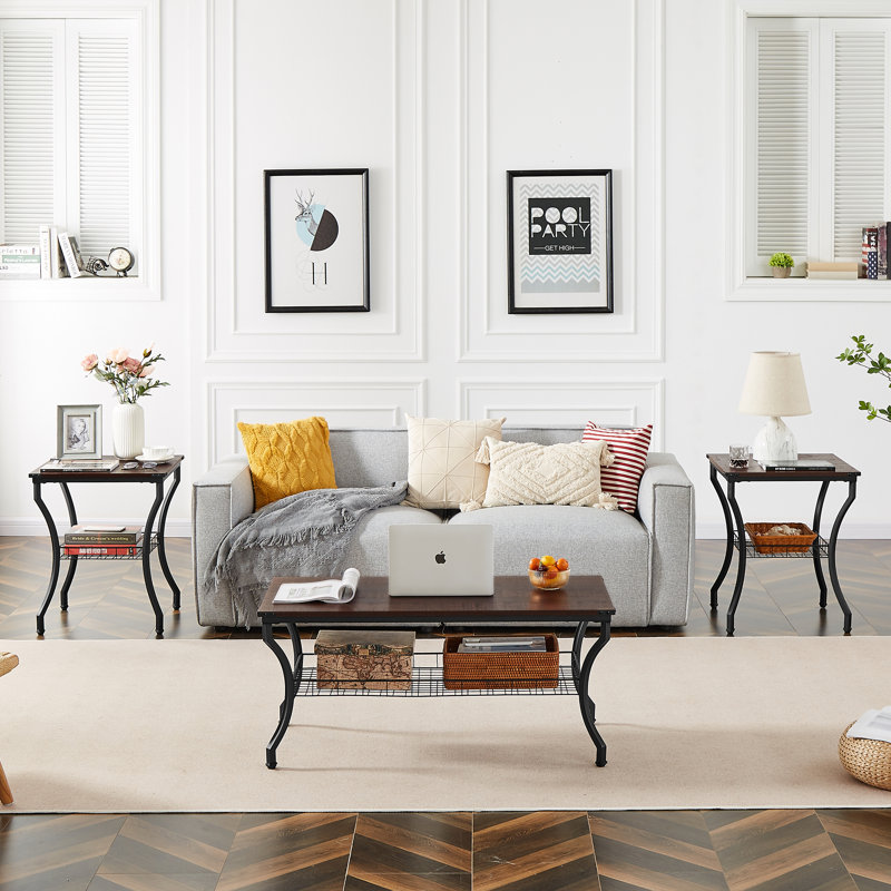 What You Get: A coffee table and 2 end tables made of sturdy metal frame and high-quality laminated wood to give your living room a new look. In addition, we also equipped the corresponding assembly accessories in the package.