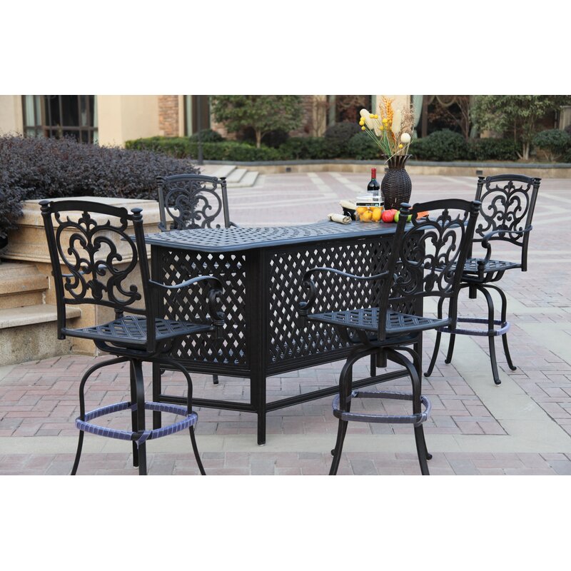 It’s time to party with a five-piece party bar set. The style of the bar gives you enough space to gather around with your company while sipping on some drinks and chatting. The shelf is convenient to store all beverages and tools for a long night of merriment, turning you into a professional bartender. The stools include a seat cushion and have a scrolled seatback.