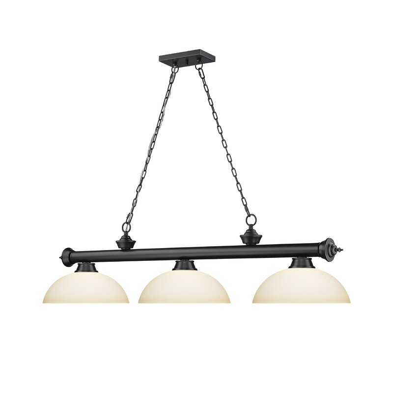 The elegant sheen adds modern sophistication to this three-light steel billiard light. Suspend this fashionable fixture over a kitchen island, dining table, or pool table to add a balanced aesthetic to interior décor.