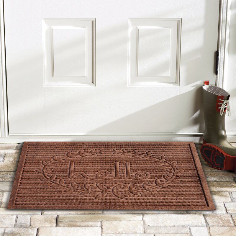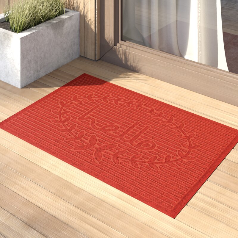 Invite family and friends into your home with this indoor/outdoor mat. Made from all-weather polypropylene in a sleek, solid hue of your choice, it features the word “hello” and an oval-shaped floral accent embedded into the grooved surface to assist in collecting mud, dirt, and dust from shoes. A handy rubber backing keeps everything in place, while a thin pile still helps to prevent tracking outside messes onto your floors. To clean, sweep, or vacuum. Or, get out the garden hose for a higher-powered alternative.