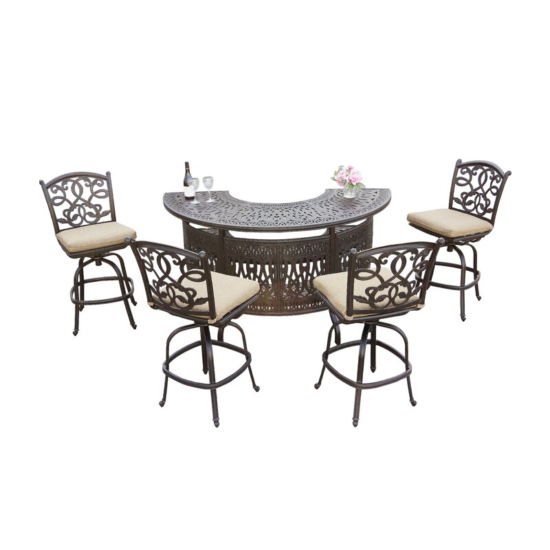 This five-piece bar set can be added to your patio or any outdoor entertainment area, which can be very convenient for any occasion. It can accent a small or large space and features a beautiful rich finish that is durable yet elegant.